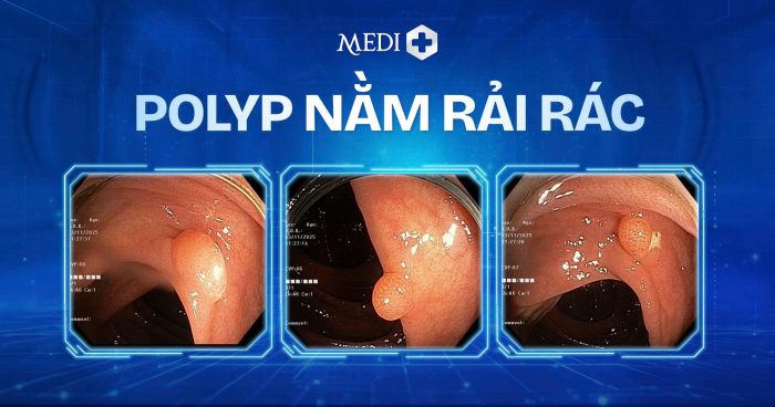 Trong quá trình nội soi tiêu hóa tại Phòng khám Đa khoa Mediplus Nam Định, các bác sĩ đã ghi nhận ca bệnh đặc biệt với nhiều polyp xuất hiện rải rác trên toàn bộ ống tiêu hóa, phát hiện nhiều polyp kích thước lớn, cuống dài.