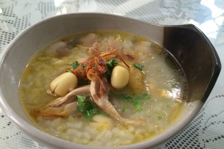 Cháo gà nấm rơm là món ăn mềm nhuyễn, dễ tiêu hóa, rất thích hợp cho bệnh nhân đau dạ dày.