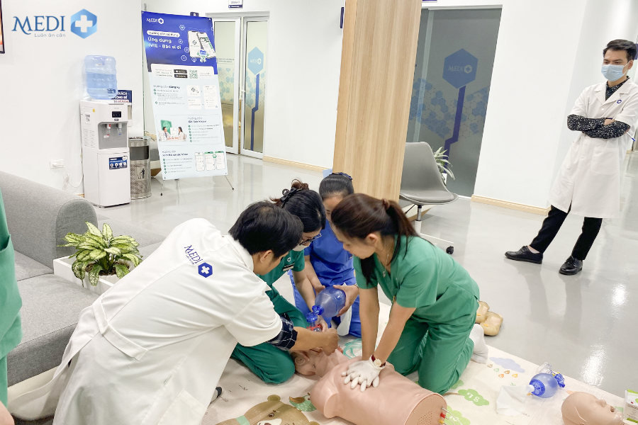 Nhằm nâng cao năng lực chuyên môn và đảm bảo chất lượng cấp cứu, Phòng khám Đa khoa Mediplus Nam Định đã tổ chức đào tạo nội bộ với chủ đề: “Thực hành cấp cứu ngừng tuần hoàn” dành cho đội ngũ y bác sĩ, điều dưỡng và nhân viên phòng khám.